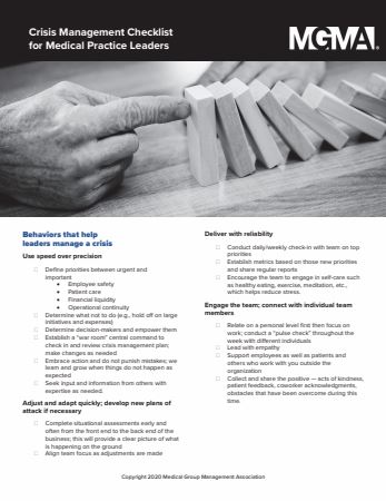 Cristy Good, MPH, MBA, CPC, CMPE, is a Senior Industry Advisor at MGMA, with expertise in practice management, healthcare operations, revenue cycle management and project management. She has more than 20 years of experience in medical practice administration and financial management. Prior to joining MGMA, Cristy was a credentialed trainer with EPIC and helped prepare providers for one of the largest EHR implementations. For more than five years, she was an administrator with a large health system where she oversaw the strategic and daily operations for multiple outpatient medical practices and also spent six months working for a private home health agency. In addition, she has more than 10 years of clinical laboratory experience.