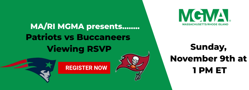 Get ready for game day! Join the Massachusetts/Rhode Island MGMA community at Bar Louie, located at Patriot Place, to watch the Patriots take on the Buccaneers on Sunday, November 9 at 1:00 PM.