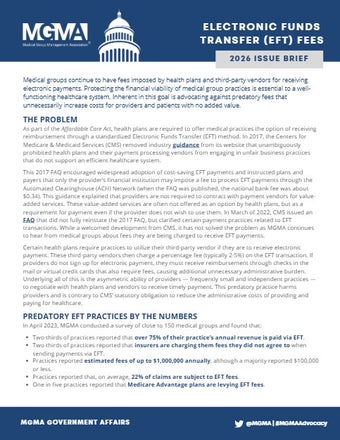 MGMA urges Congress to establish a uniform ambulatory payment rate system for services provided across various ambulatory care settings. Payments under the new system must reflect the actual cost of care and be developed in a budget-neutral manner.